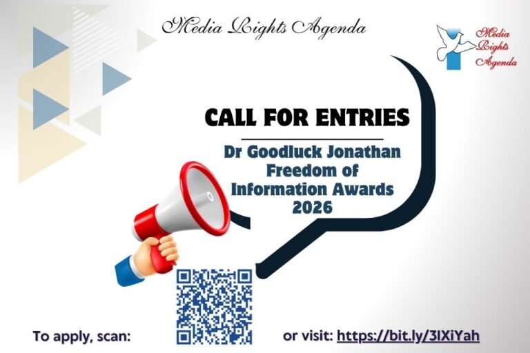 The Media Rights Agenda (MRA) has announced the opening of entries for the Goodluck Jonathan Freedom of Information (FOI) Awards 2026, which seek to honour journalists advancing transparency and accountability through the effective use of the Freedom of Information Act, 2011.